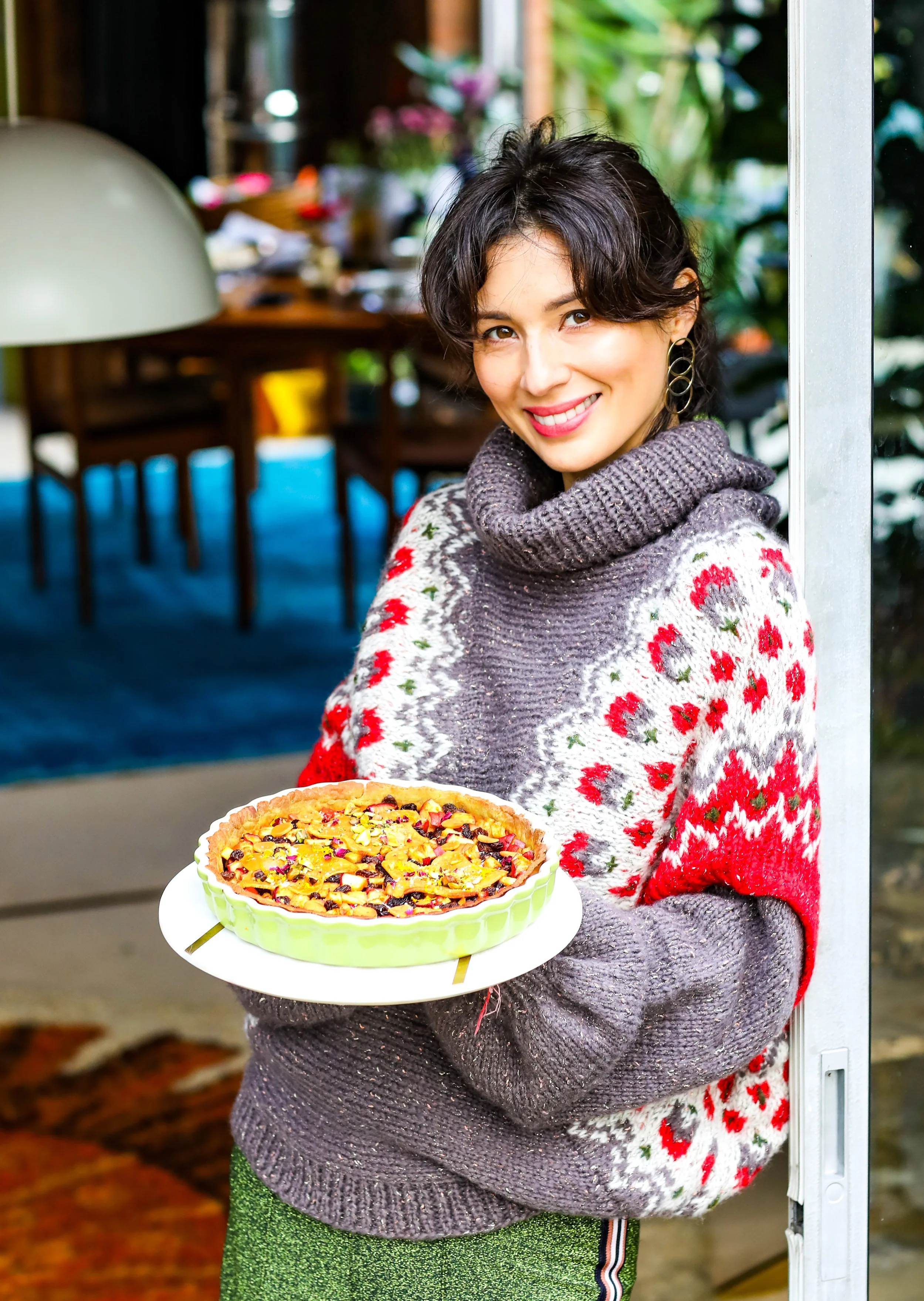 As with all my recipes this one is gluten-free thanks to a nifty chickpea or “gram” flour crust. You can easily source gram flour from your local supermarket — it’s economical and easy to work with, a great one to try with kids as it’s easy to make repairs while you work and, unlike regular wheat flour, you cannot overwork it and there’s no need to keep everything cool. Gram flour does need a good cook through so, using a traditional Indian and Ayurvedic cooking technique, I toast it first to get rid of any rawness and then once assembled the tart just needs 15 minutes in the oven to serve. Pair it with a tart creme fraiche or make your own dairy-free version with a quick blend of soaked cashews, fresh ginger, honey and lemon juice — it’s well worth it.