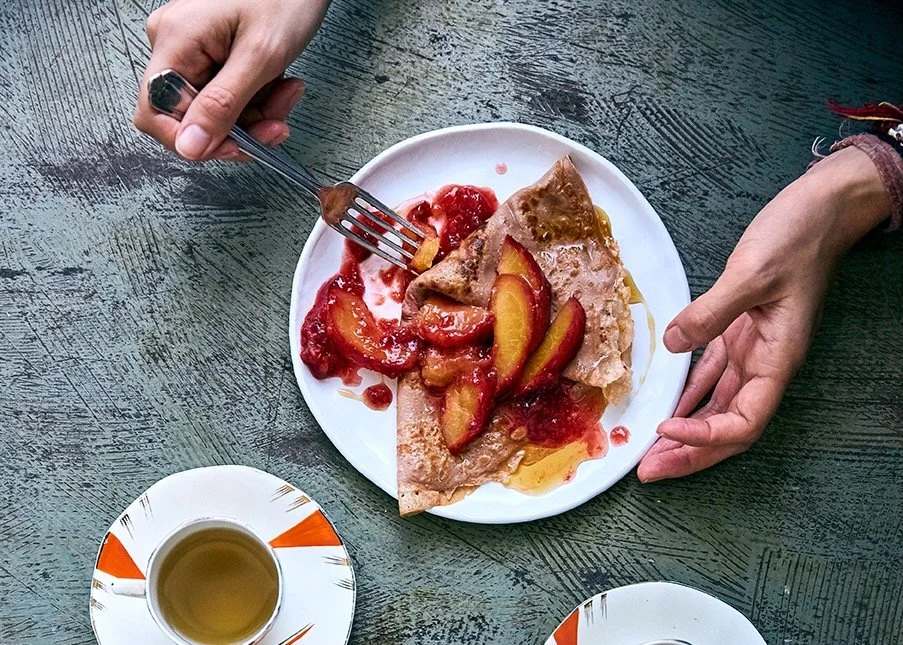 CHESTNUT CRÊPES WITH VANILLA CHAI PLUM COMPOTE