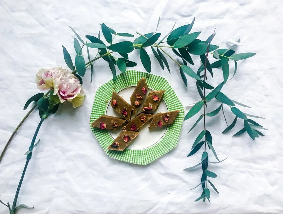 This is the choc orange version of my recipe above incorporating the warming qualities of orange and cocoa which are great as we move into this colder time of year. In this recipe I also swapped out half of the chickpea flour for sorghum — a type of millet that is more Vata-balancing, which can be found online or in specialist stores. You can also just stick with the original amount of chickpea flour, since there is plenty of ghee and jaggery in this barfi to help offset its Vata tendencies! I also added some saffron and cardamom just for good measure, but go ahead and experiment as this recipe is endlessly versatile and the beauty of it is that you can taste and adjust before committing to the final sweet.
