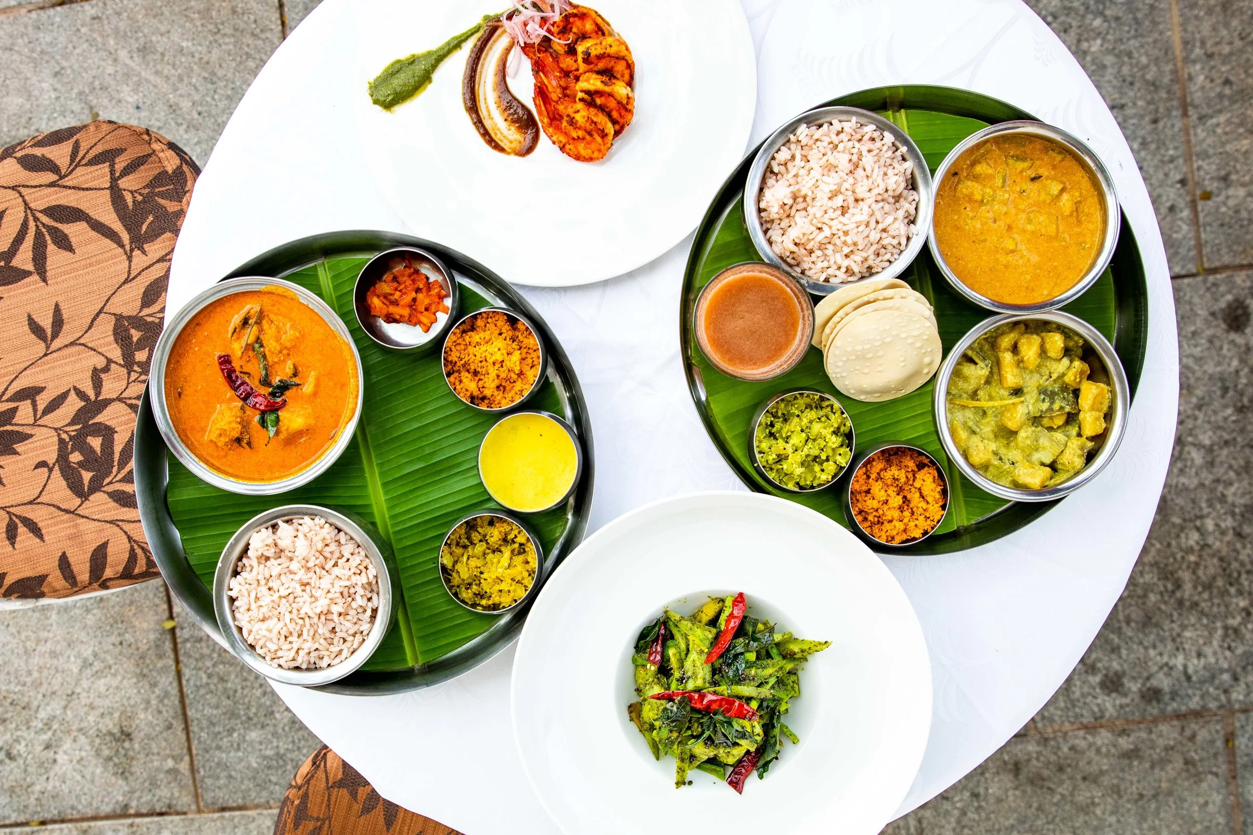 That evening we made our merry way to Thekkady. Spiralling up into the mountains again we stayed at the beautiful boutique hotel Niraamaya Cardamom Club, nestled in the rainforest still inhabited by tigers, while our driver Rateesh enthralled us with his encounters with a tiger and a herd of wild elephants — which all ended well, thank goodness! As this was another small, quiet boutique hotel, we got to hang out with the chefs again and on one of the evenings when all the guests were at dinner elsewhere, they cooked us traditional South Indian thalis, AKA a total feast! We dined with unbelievable views mingling with the fragrant spices, from cardamom and cinnamon to turmeric and ginger — a foodie's paradise! One of the waiters also taught us in which order to eat the foods and answered my many questions about the ingredients. That evening we headed into town for a great night of enchanting Kathakali dancing, followed by the mindblowing feats of Kalaripayattu martial artists.